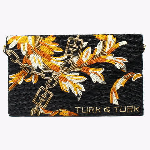 Finish off any outfit, from blue jeans and a cute top to a cocktail or gala dress, with an eye-catching hand beaded clutch purse from TURK & TURK.