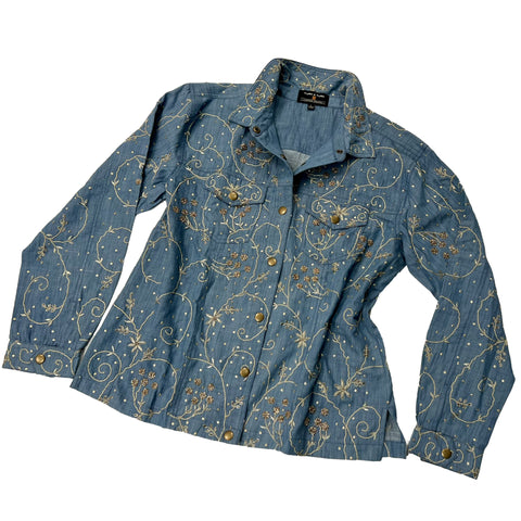 -PEARLS DENIM JACKET with SEA LIFE washable Silk lining, Limited Edition;