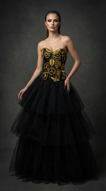 This one-of-a-kind haute couture masterpiece fuses meticulous hand embroidery with iconic supercar symbolism, reimagined through a sculptural bustier and an ethereal tulle skirt. Precision, power, and refined artistry converge to transform automotive prestige into wearable art. Each detail is crafted by hand, ensuring a creation that is as rare as it is uncompromising.