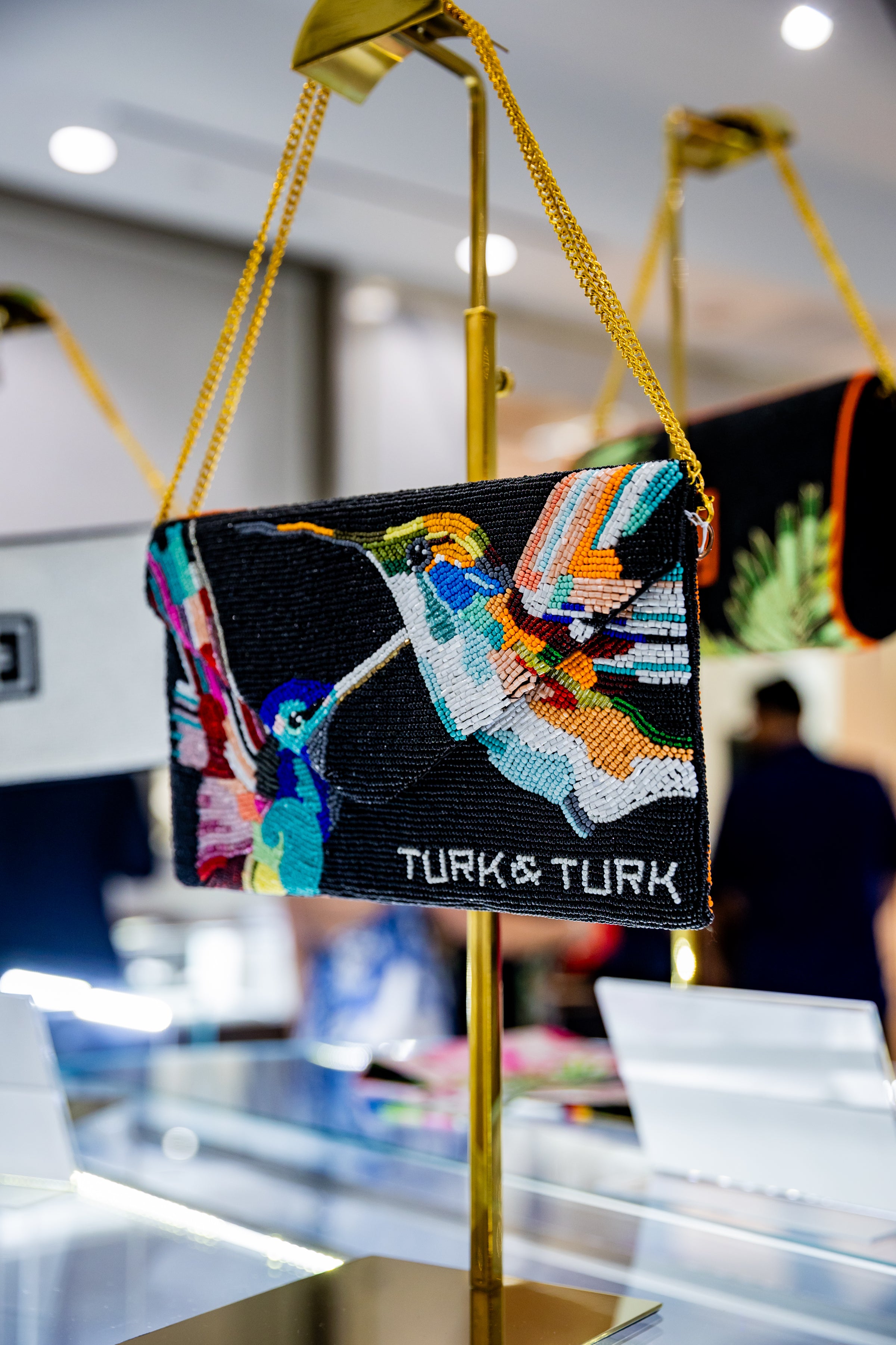 Finish off any outfit, from blue jeans and a cute top to a cocktail or gala dress, with an eye-catching hand beaded clutch purse from TURK & TURK.