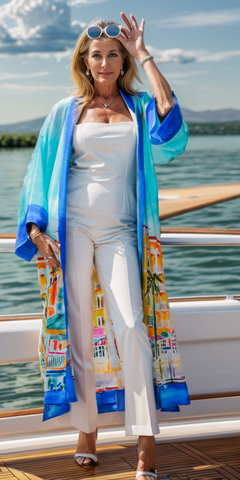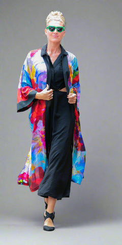 The Queen of My Heart - LIMITED EDITION Duster Kimono was inspired by a painting that Rasit Turk gifted his wife Ilkay. The painting was transformed into a Wearable Art piece and only 10 produced worldwide. Eco friendly, as they were digitally printed on silk crepe de chine, and on sustainable fabric.