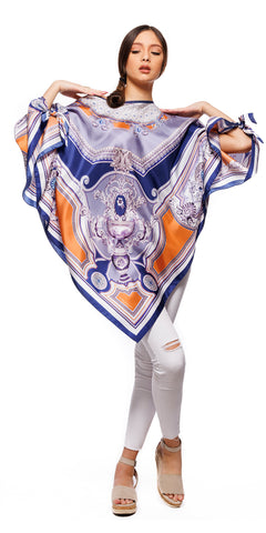 ALYA WRAP SKIRT, playful and romantic with extra long twilly tie belt style. Soft washable stretch silk. Multi color hand painted abstract hummingbirds pattern. Fun ruffles round the bottom of the skirt gives a fun lines and delicate with figure-fitting elegance as a dress style or relax fitting as skirt or tunic style. Perfect for many occasions!